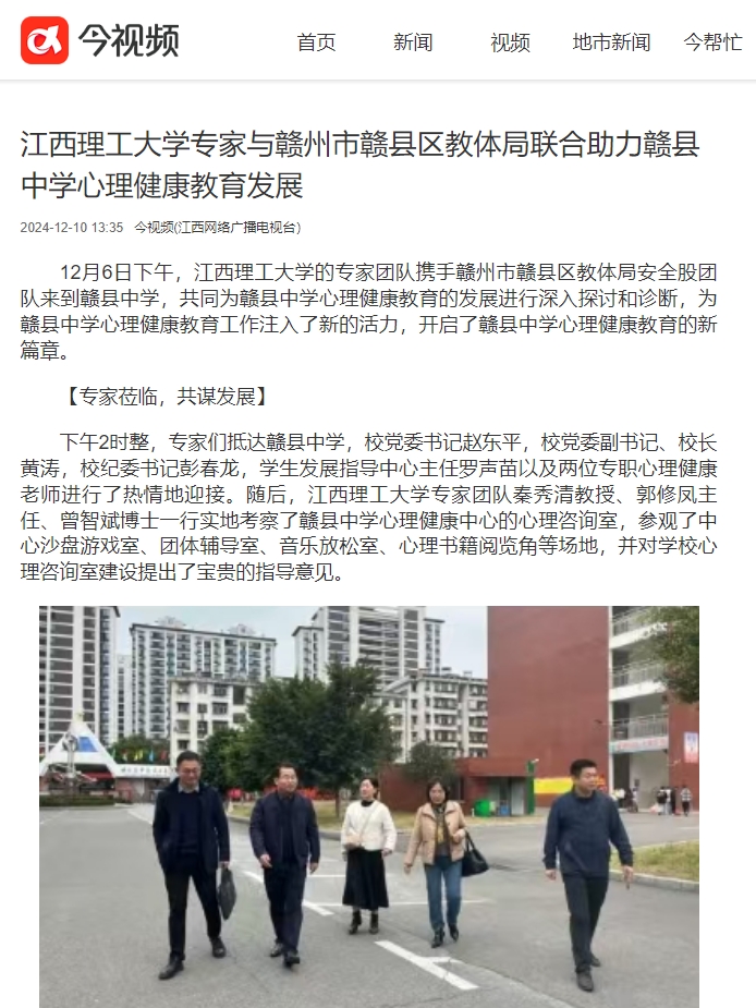 的专家团队携手赣州市赣县区教体局安全股团队来到赣县中学,共同为赣县中学心理健康教育的发展进行深入探讨和诊断,为赣县中学心理健康教育工作注入了新的活力,开启了赣县中学心理健康教育的新篇章。