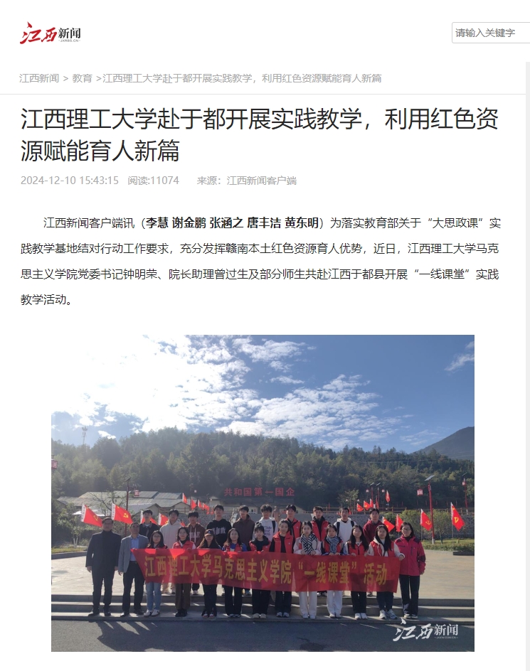 《江西新闻》:木瓜视频 赴于都开展实践教学,利用红色资源赋能育人新篇