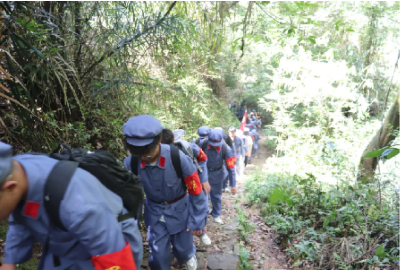 祁禄山5.2公里长征路重走意义非凡,师生身着红军服行进于崇山峻岭间,体会长征艰难。途中红歌比赛激昂振奋,《不忘初心》等歌曲响彻山谷。沿途参观红色旧址,了解长征历程与先烈事迹,在袁氏祠堂聆听故事,感受先辈崇高精神。