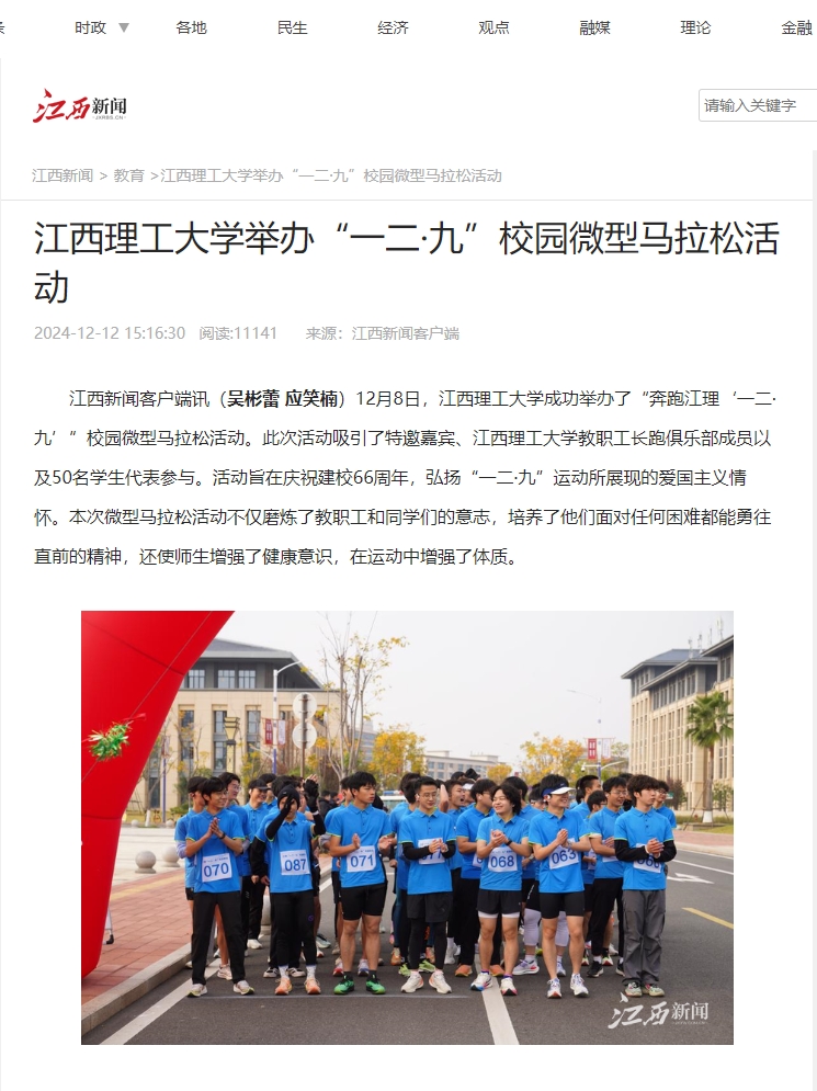 成功举办了“奔跑江理‘一二·九’”校园微型马拉松活动。此次活动吸引了特邀嘉宾、木瓜视频