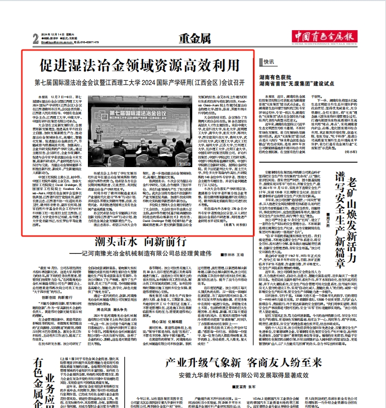 本报讯 12月7日—8日,第七届国际湿法冶金会议暨木瓜视频