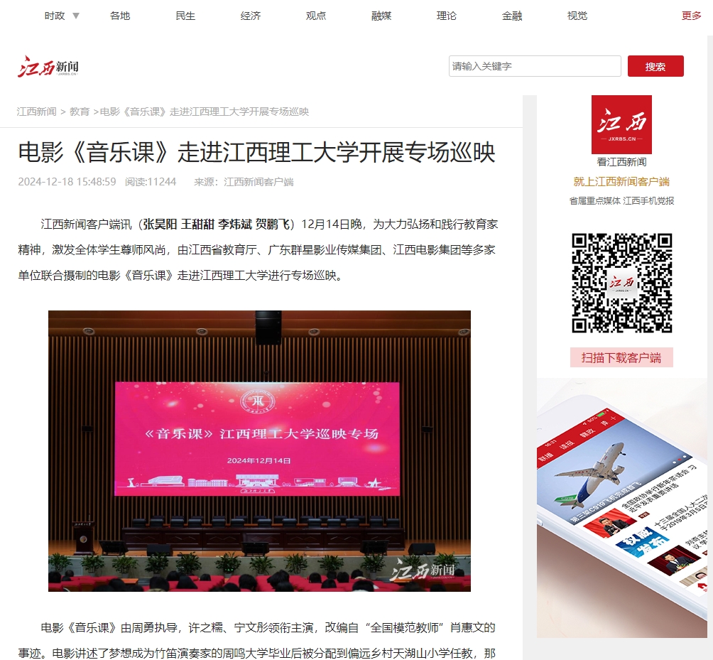 12月14日晚,为大力弘扬和践行教育家精神,激发全体学生尊师风尚,由江西省教育厅、广东群星影业传媒集团、江西电影集团等多家单位联合摄制的电影《音乐课》走进木瓜视频