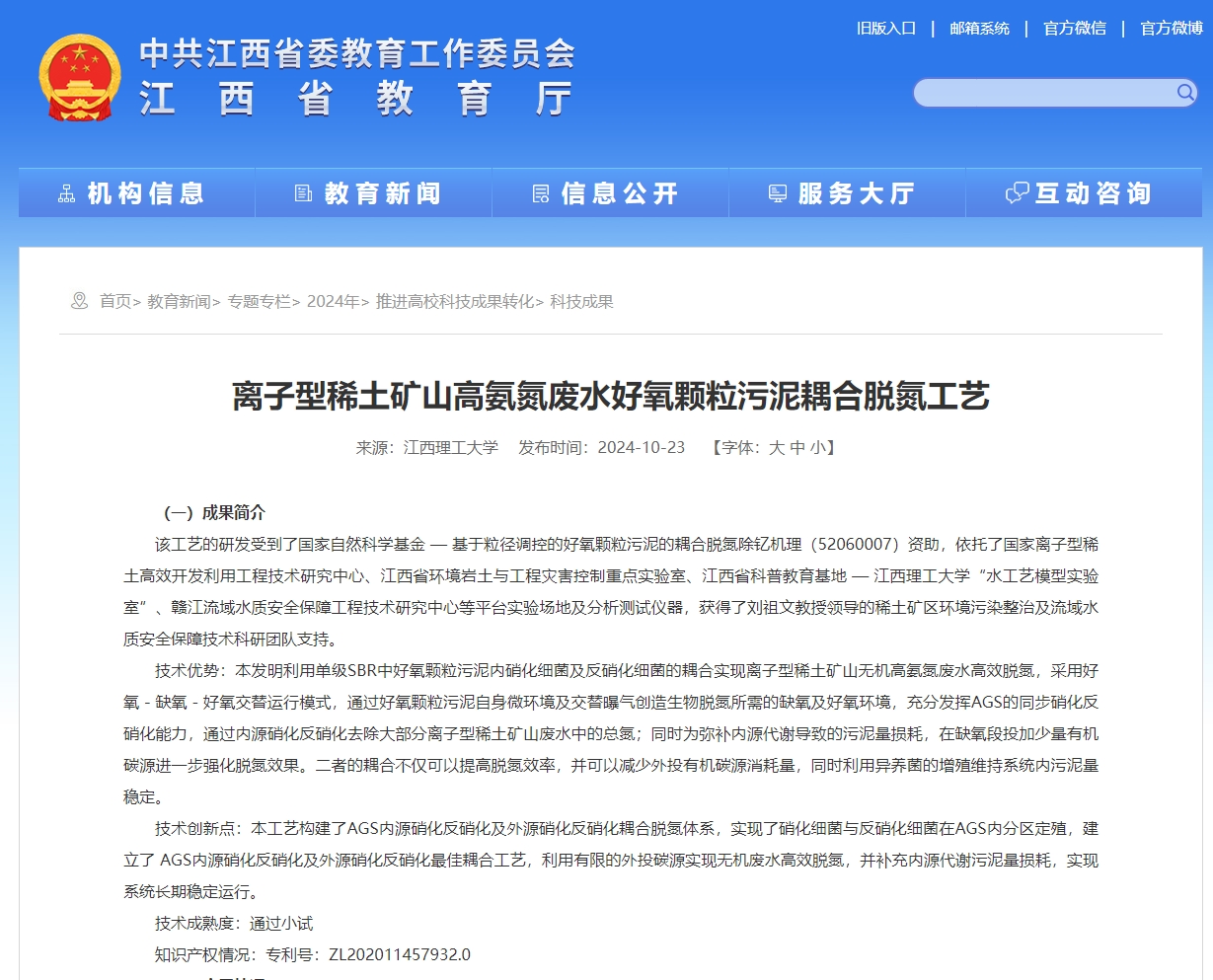 该工艺的研发受到了国家自然科学基金 — 基于粒径调控的好氧颗粒污泥的耦合脱氮除钇机理(52060007)资助,依托了国家离子型稀土高效开发利用工程技术研究中心、江西省环境岩土与工程灾害控制重点实验室、江西省科普教育基地 — 木瓜视频