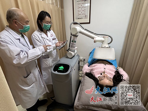 陈日新团队研发的热敏灸机器人为患者开展治疗。本报全媒体记者 陈旻摄