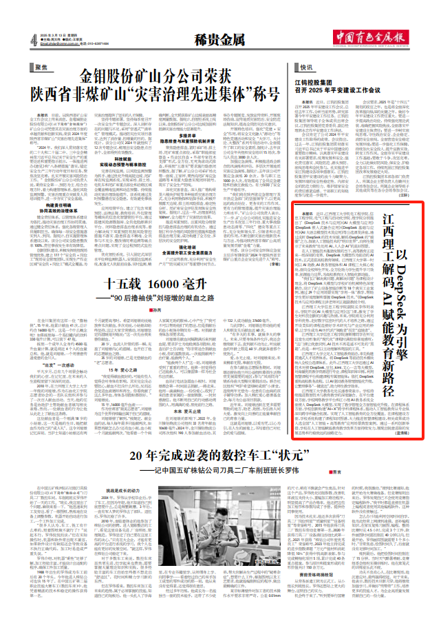 “我们以‘解决真问题、真解决问题’为课程设计理念,将DeepSeek大模型与学校矿冶机械特色深度耦合,设计了矿山设备智能诊断等18个真实工业案例,通过29个应用场景实现‘学用一体’教学,帮助学生更好地理解和掌握DeepSeek技术。”《DeepSeek技术与应用》课程主讲老师刘正超副教授介绍。