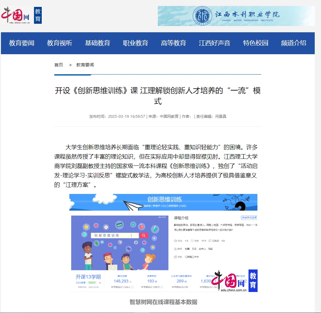 商学院刘磊副教授主持的国家级一流本科课程《创新思维训练》,独创了“活动启发-理论学习-实训反思”螺旋式教学法,为高校创新人才培养提供了极具借鉴意义的“江理方案”。