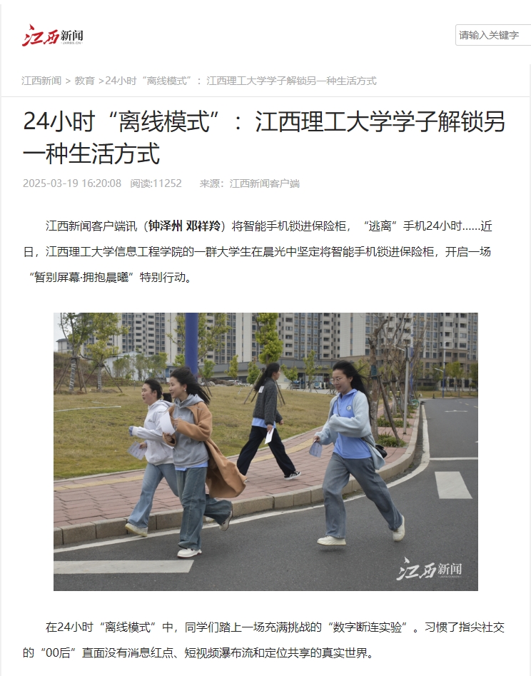 这场24小时的“离线对谈”,不仅是一次行为实验,更能唤起江理青年学子的觉醒:暂别屏幕是对生活深度的探索,是一种唤醒自我对现实世界的珍视行动。活动让更多大学生思考时间管理与情感维系,在“数字洪流”中锚定自我价值。