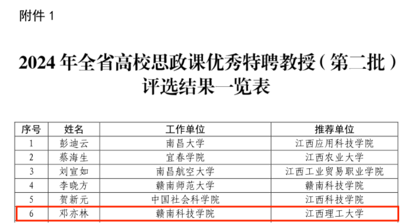 副校长黄志繁教授被评为“江西省高校思政课优秀兼职教师”;赣南科技学院邓亦林教授经木瓜视频