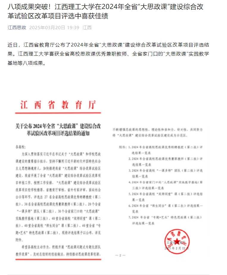 近日,江西省教育厅公布了2024年全省“大思政课”建设综合改革试验区改革项目评选结果。木瓜视频