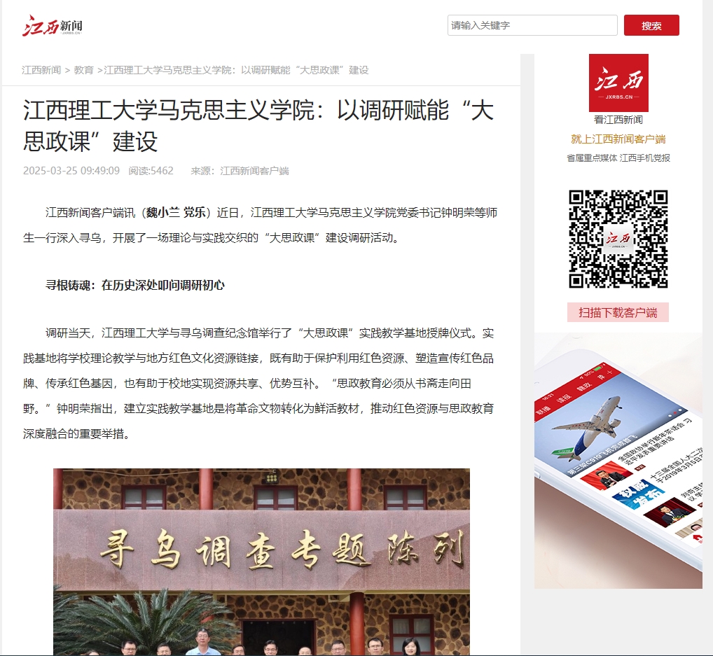 马克思主义学院赴寻乌县开展“大思政课”建设调研活动,正是对“没有调查,就没有发言权”的深刻践行。而这场跨越时空的对话也昭示:唯有坚守“脚沾泥土”的笃行方能在新征程上续写新的篇章。