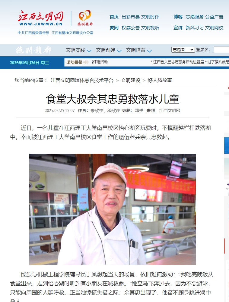 南昌校区食堂工作的退伍老兵余其忠救起。