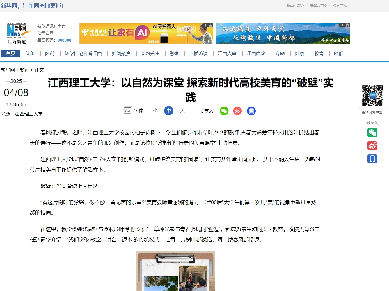 放眼望去,这片红土地上的美育实践,恰似赣江春潮,奔涌向前。在这里,美育不再是锦上添花的点缀,而是立德树人的重要支点;美育课堂不再囿于方寸讲台,而是延伸到了天地之间。这场关于“美”的深刻变革,正在为培养德智体美劳全面发展的时代新人注入澎湃动能。(黄丽娜、张素华)