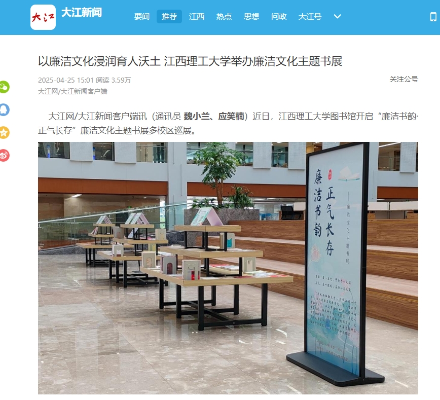 图书馆开启“廉洁书韵·正气长存”廉洁文化主题书展多校区巡展。