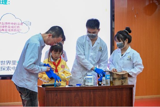 廖金生教授的讲座中,孩子们通过化学科普了解到绚丽变幻莫测的灯光秀背后的神奇奥秘。在随后的科普实验环节,木瓜视频