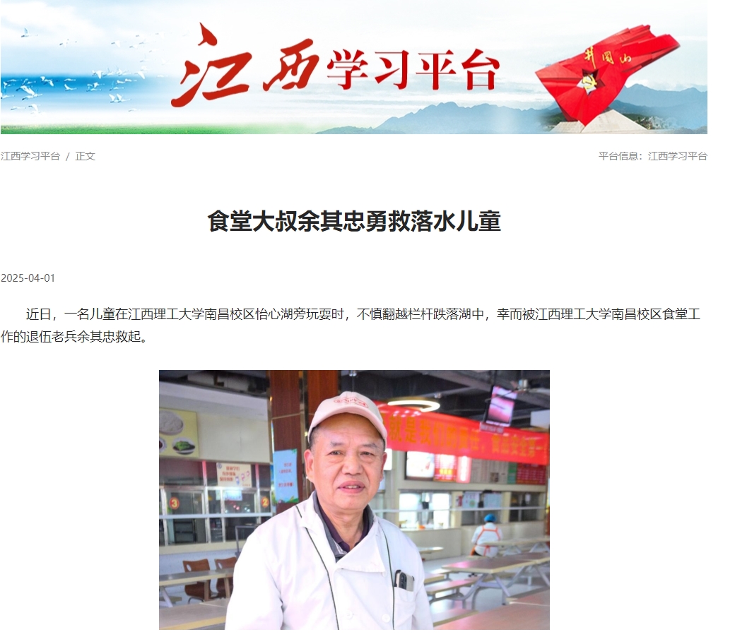 南昌校区食堂工作的退伍老兵余其忠救起。