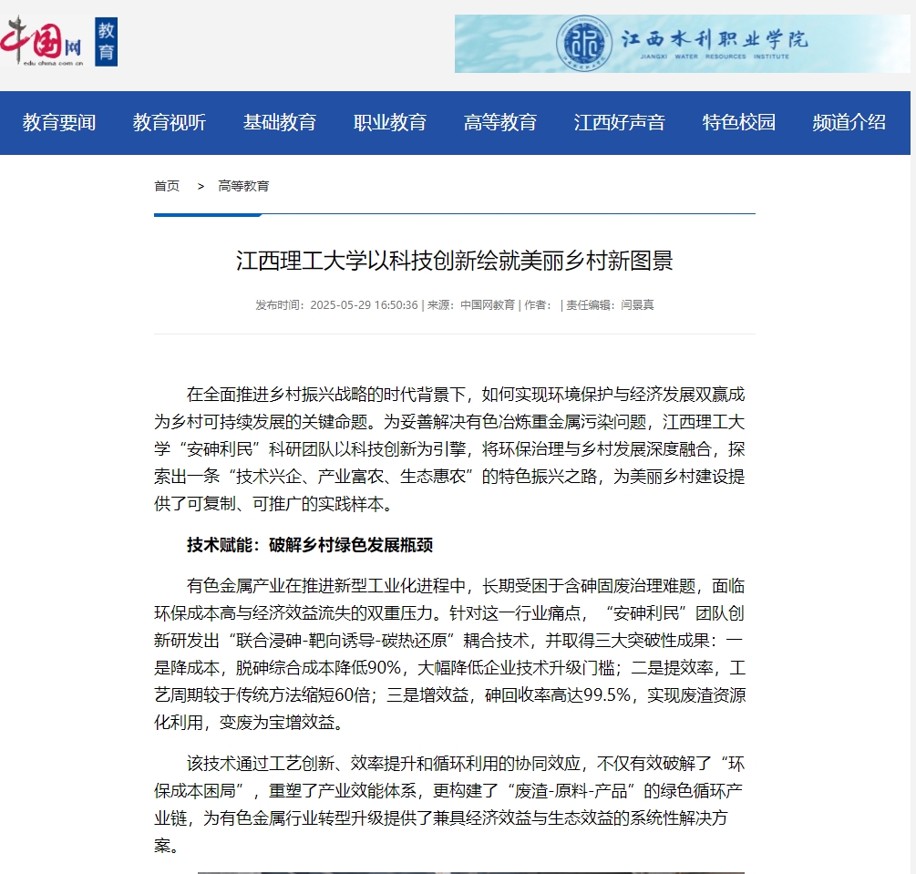 “安砷利民”科研团队以科技创新为引擎,将环保治理与乡村发展深度融合,探索出一条“技术兴企、产业富农、生态惠农”的特色振兴之路,为美丽乡村建设提供了可复制、可推广的实践样本。