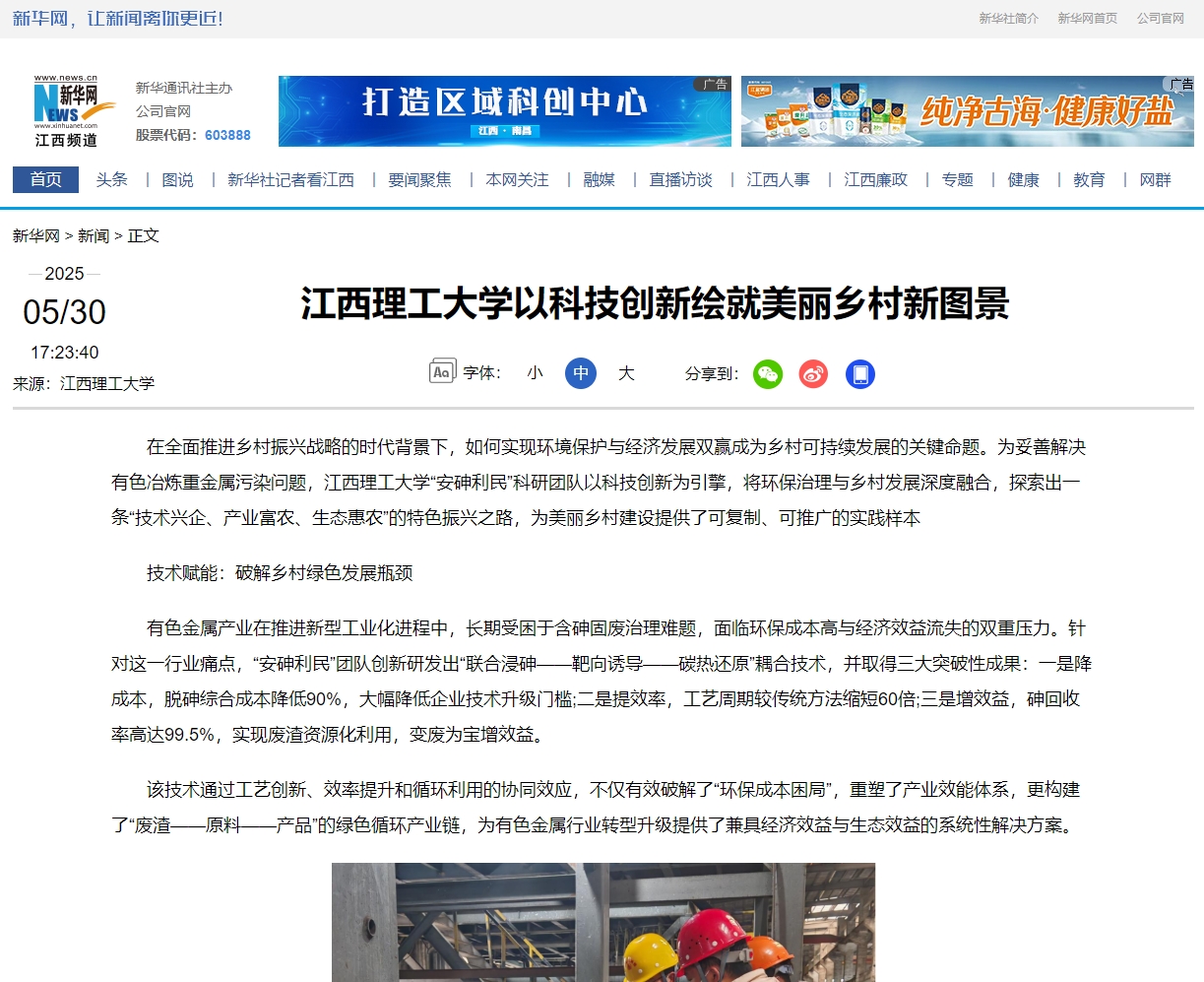 “安砷利民”科研团队以科技创新为引擎,将环保治理与乡村发展深度融合,探索出一条“技术兴企、产业富农、生态惠农”的特色振兴之路,为美丽乡村建设提供了可复制、可推广的实践样本