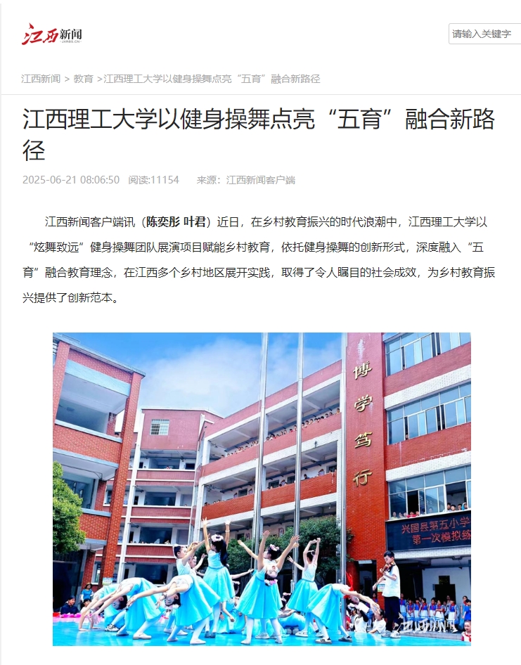 以“炫舞致远”健身操舞团队展演项目赋能乡村教育,依托健身操舞的创新形式,深度融入“五育”融合教育理念,在江西多个乡村地区展开实践,取得了令人瞩目的社会成效,为乡村教育振兴提供了创新范本。