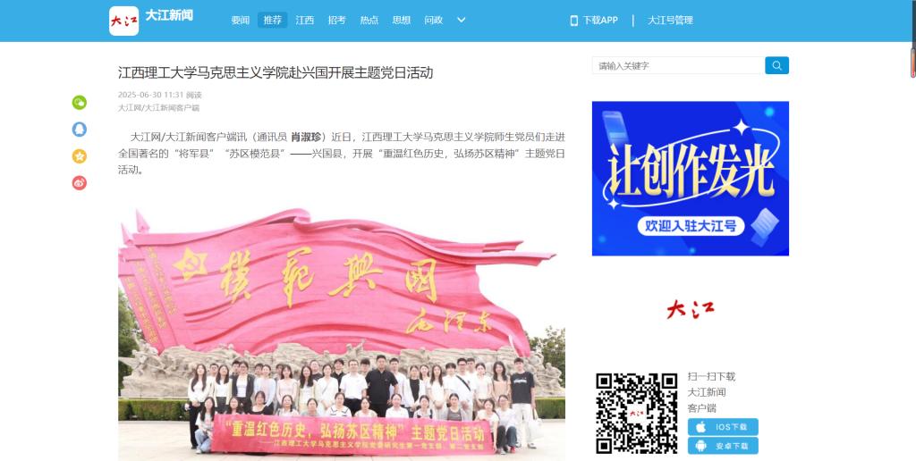 马克思主义学院师生党员们走进全国著名的“将军县”“苏区模范县”——兴国县,开展“重温红色历史,弘扬苏区精神”主题党日活动。