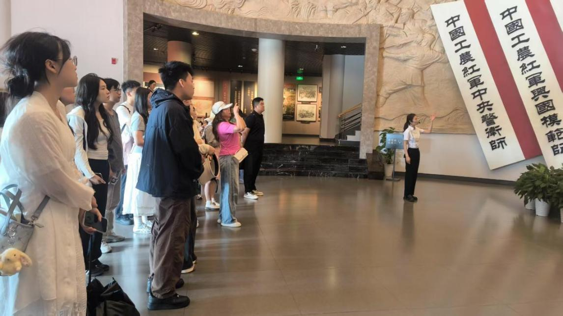 “苏区干部好作风,自带干粮去办公”的悠扬旋律回荡展厅,讲解员用清亮的嗓音唱起兴国山歌,将红色廉政故事融入传统曲调。一曲曲山歌,既是对萧华、陈奇涵等兴国籍革命先辈清廉自律精神的深情讴歌,也让大家感悟“日着草鞋干革命,夜打灯笼访贫农”的红色革命精神,让清正廉洁的种子在研究生党员心中生根发芽。