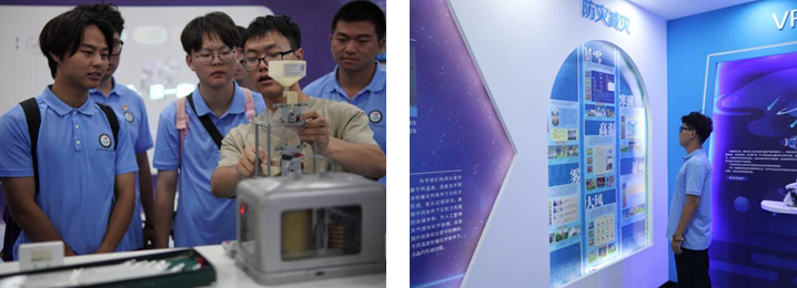 图左为工作人员向队员展示气象监测系统 图右为队员参观气象展厅 马健平、蔡旭颖 供图