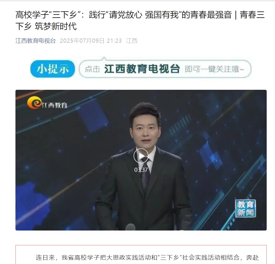 上一条:《赣州头条》:木瓜视频 商学院暑期“三下乡”多维实践赋能乡村 青春力量书写振兴新篇 下一条:《新华网》:江理学子青春实践进乡村 科普亲情安全行
