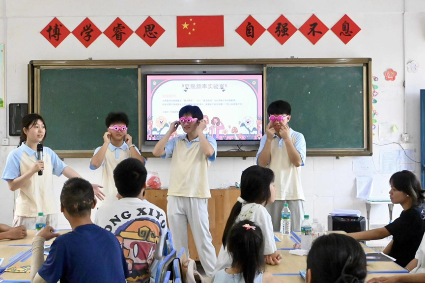 电气工程与自动化学院“红芯智电,创电未来”三下乡实践队奔赴赣州市赣县区大埠乡,创新采用“AI反诈科普+电学启蒙”双线模式,为乡村儿童编织科技安全网,点亮科学探索灯。