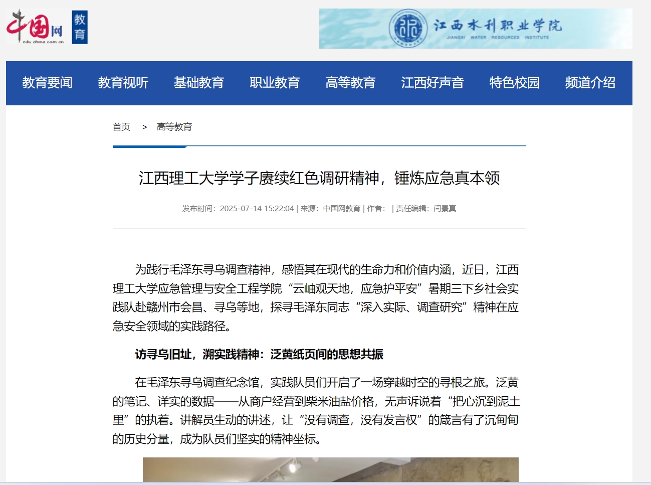 应急管理与安全工程学院“云岫观天地,应急护平安”暑期三下乡社会实践队赴赣州市会昌、寻乌等地,探寻毛泽东同志“深入实际、调查研究”精神在应急安全领域的实践路径。