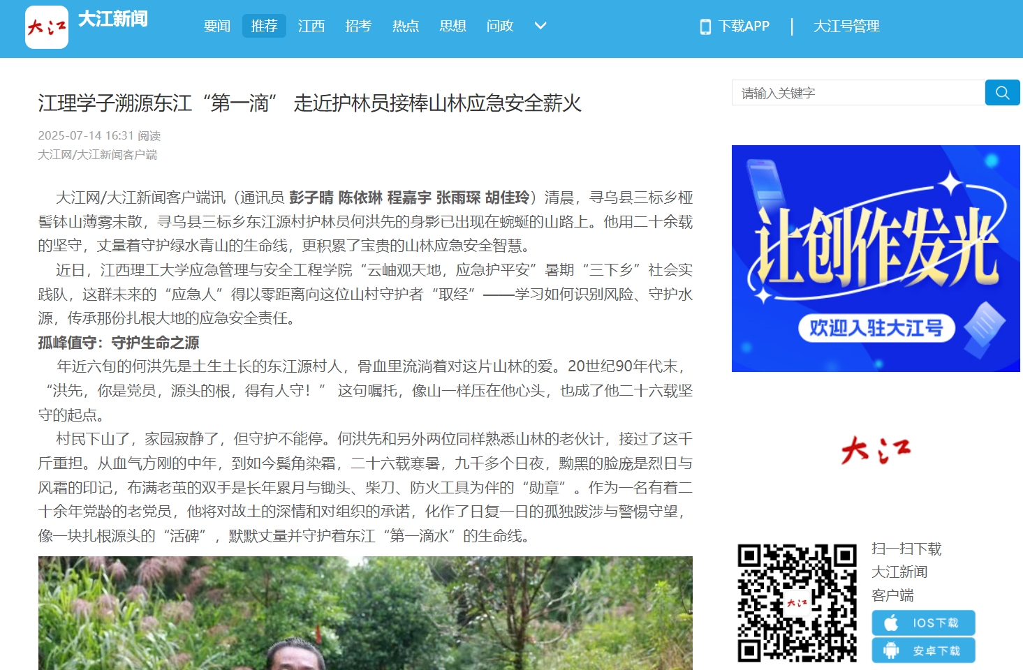 看着眼前充满求知欲的年轻面孔,这位老护林员的脸上露出了欣慰期许的笑容。他用脚步和岁月换来的宝贵经验——关于山林、水文与安全的深刻认知,毫无保留地传递给未来的“应急人”。这既是对学子的信任与托付,更是对守护东江源头事业生生不息的期盼。