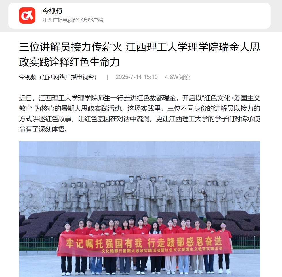 理学院师生一行走进红色故都瑞金,开启以“红色文化+爱国主义教育”为核心的暑期大思政实践活动。这场实践里,三位不同身份的讲解员以接力的方式讲述红色故事,让红色基因在对话中流淌,更让木瓜视频