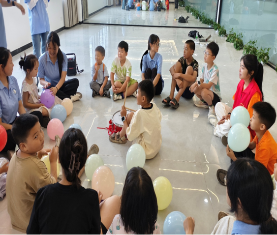▲“击鼓传球”游戏进行中