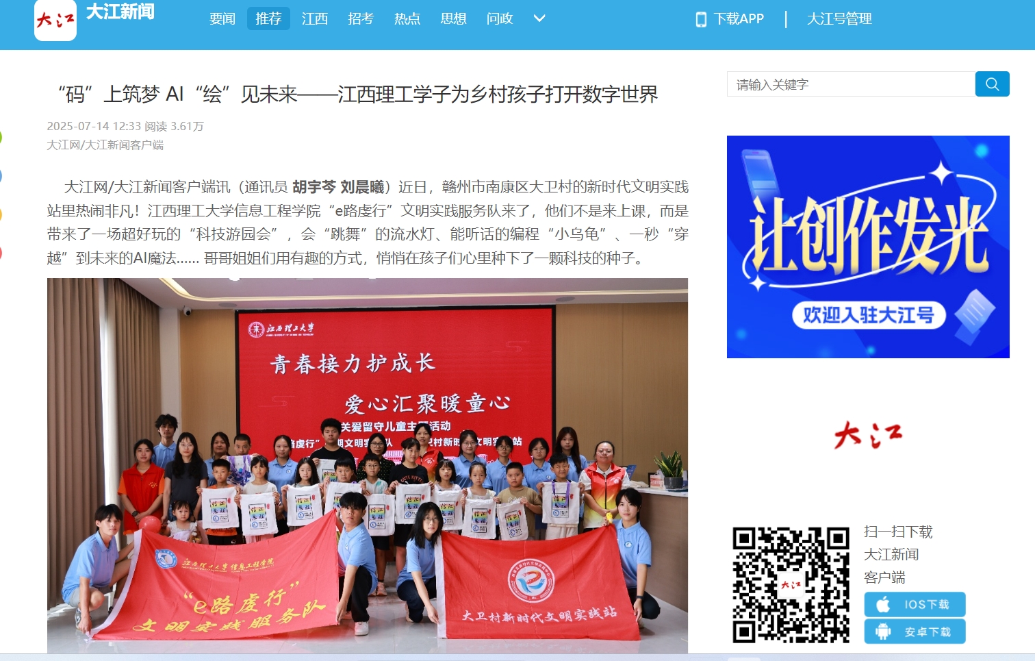 信息工程学院学子们走出校园、服务乡村的温暖实践。他们用自己学的专业知识,变着花样给村里的孩子们打开科技新世界的大门。这不仅仅是一次活动,更是为乡村的未来,悄悄点亮了一盏盏希望的灯。实践队将高校育人成果转化为服务社会的动能,为缩小城乡数字鸿沟、推动教育公平与乡村振兴贡献专业力量。