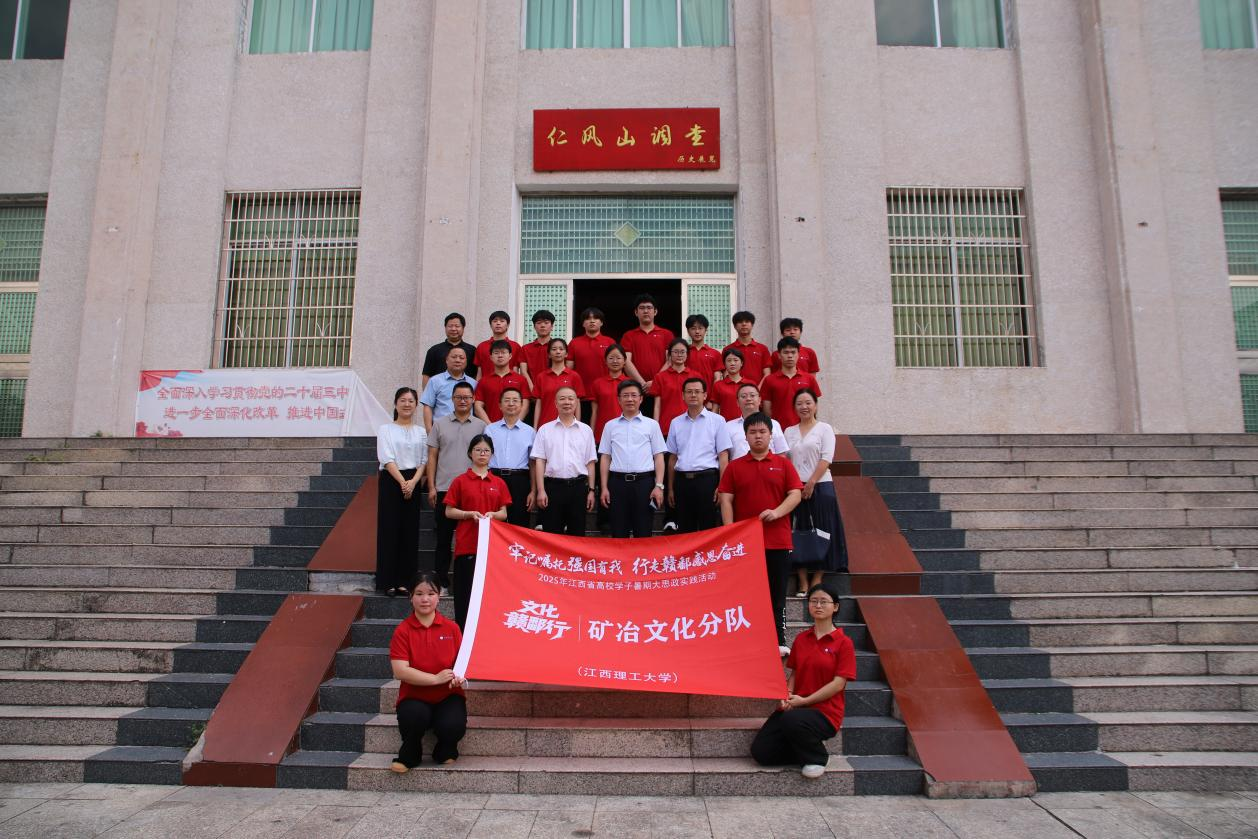资源与环境工程学院“逐梦矿冶情 点燃报国志”暑期大思政实践队的地矿专业青年学子们,深入于都、大余的群山之间,开启了一场以“牢记嘱托强国有我 行走赣鄱感恩奋进——文化赣鄱行”为主题的矿冶文化寻根之旅。他们以学铸魂、以讲传情,在历史深处汲取力量,用青春之声点燃薪火。