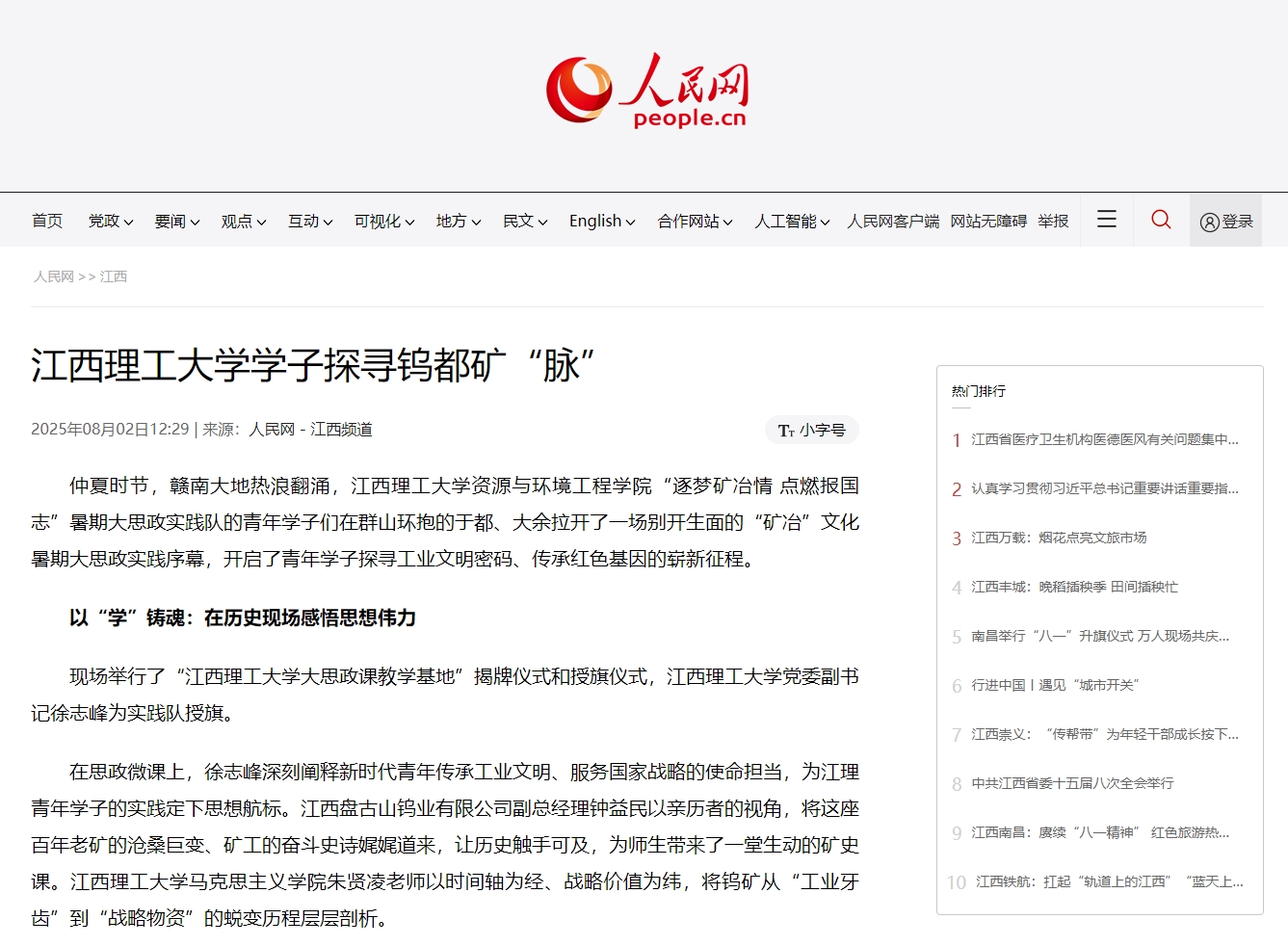 从血色钨砂道到绿色矿山,从传统开采到智能转型,江西理工学子以“学讲研践”立体化实践模式,在矿冶文脉中解码中国式现代化的发展智慧。(黄辰璐、魏小兰)