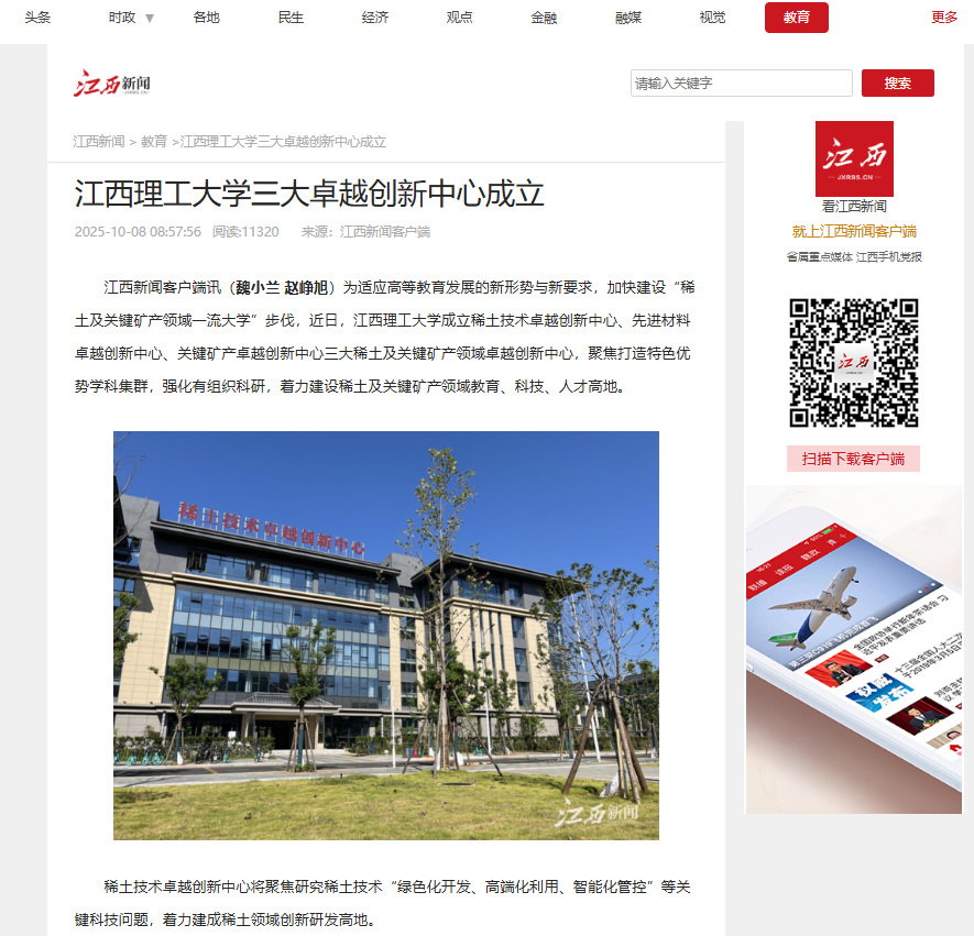 稀土技术卓越创新中心将聚焦研究稀土技术“绿色化开发、高端化利用、智能化管控”等关键科技问题,着力建成稀土领域创新研发高地。