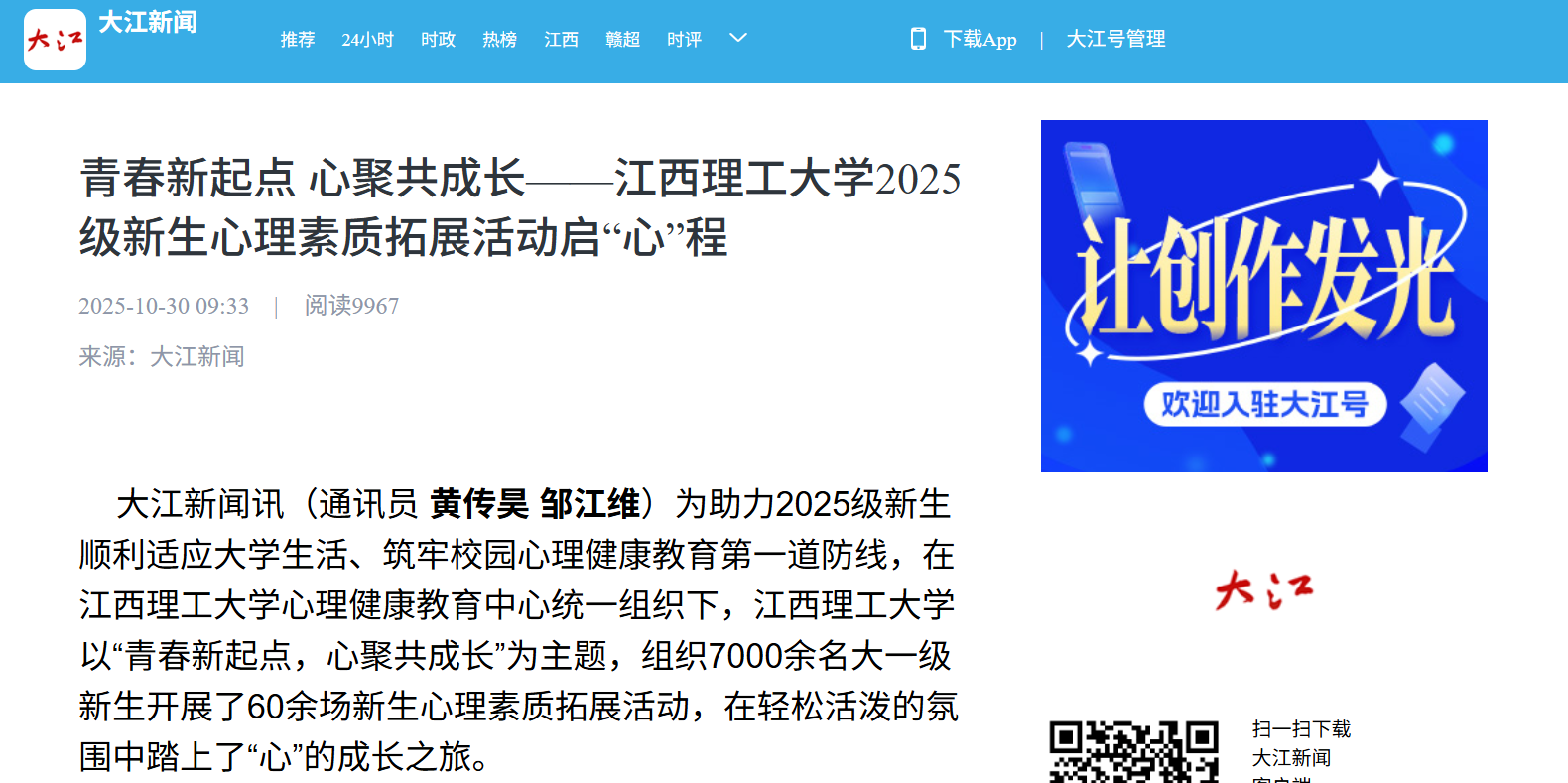 大江新闻讯(通讯员黄传昊 邹江维)为助力2025级新生顺利适应大学生活、筑牢校园心理健康教育第一道防线,在木瓜视频