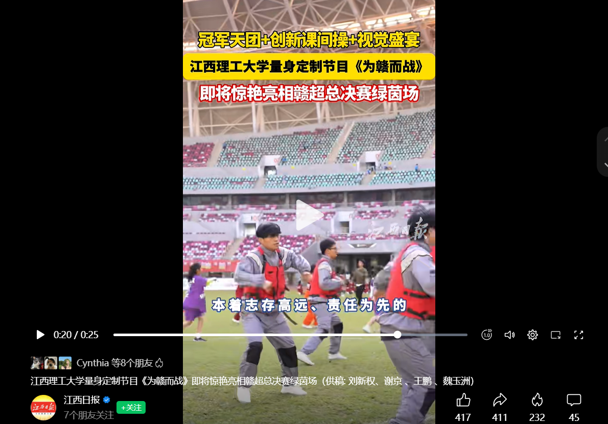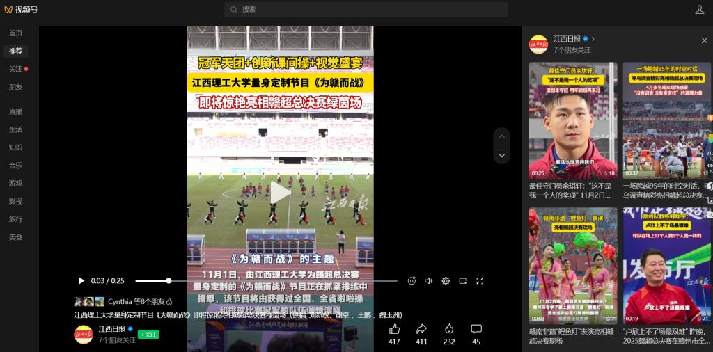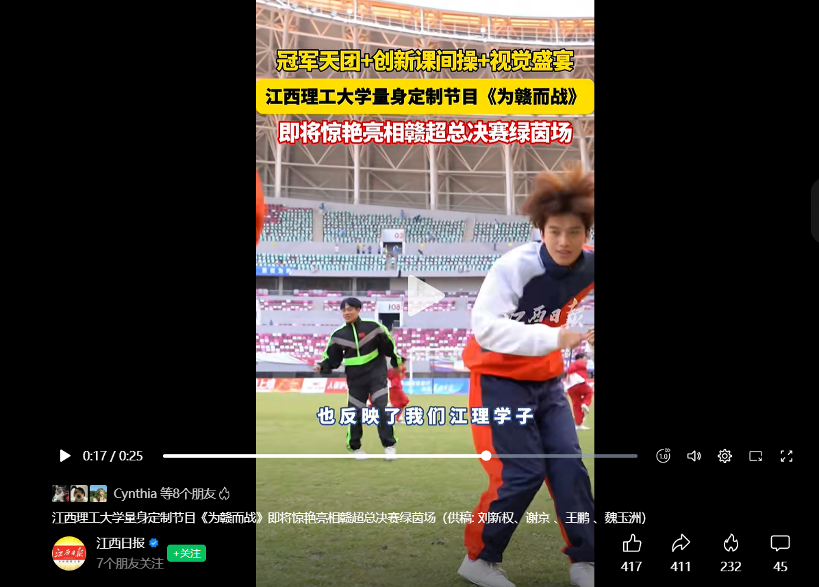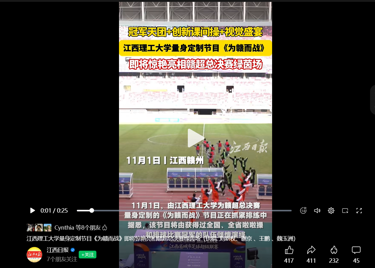 上一条:《江西日报视频号》:《为赣而战》惊艳赣超总决赛现场 下一条:《大江新闻》:视频|木瓜视频 《为赣而战》燃爆赣超总决赛