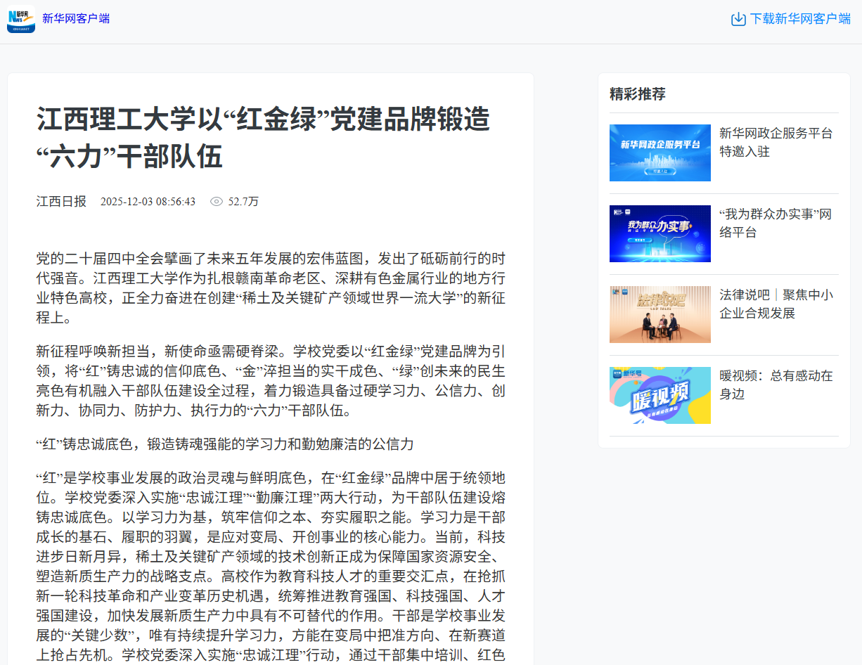 作为扎根赣南革命老区、深耕有色金属行业的地方行业特色高校,正全力奋进在创建“稀土及关键矿产领域世界一流大学”的新征程上。