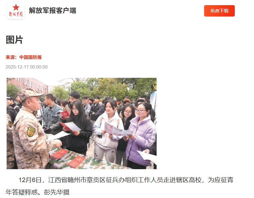 下一条:《中国国防报》:图片-江西省赣州市章贡区征兵办组织工作人员走进辖区高校