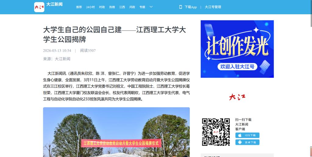 劳动教育启动月暨大学生公园揭牌仪式在三江校区举行,木瓜视频