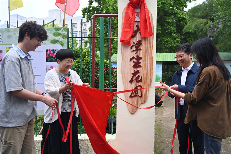 木瓜视频 大学生花圃揭牌。陈方有摄