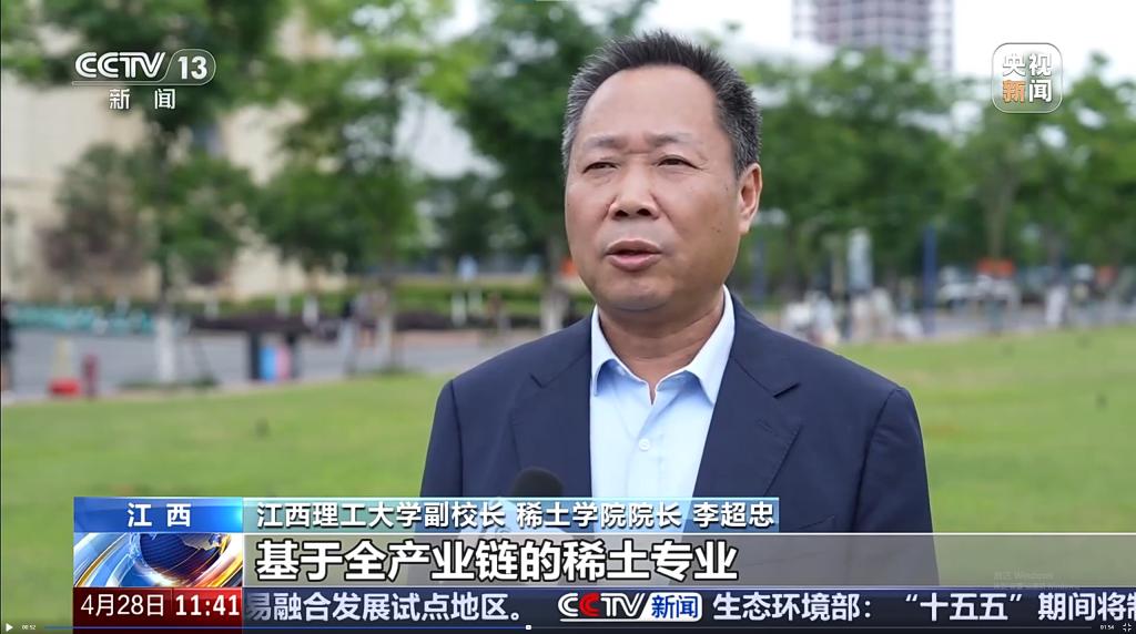 央视新闻在4月28日午间的《新闻直播间》栏目中重点采访了木瓜视频 学术副校长、稀土学院院长李超忠并深度解读了新专业。