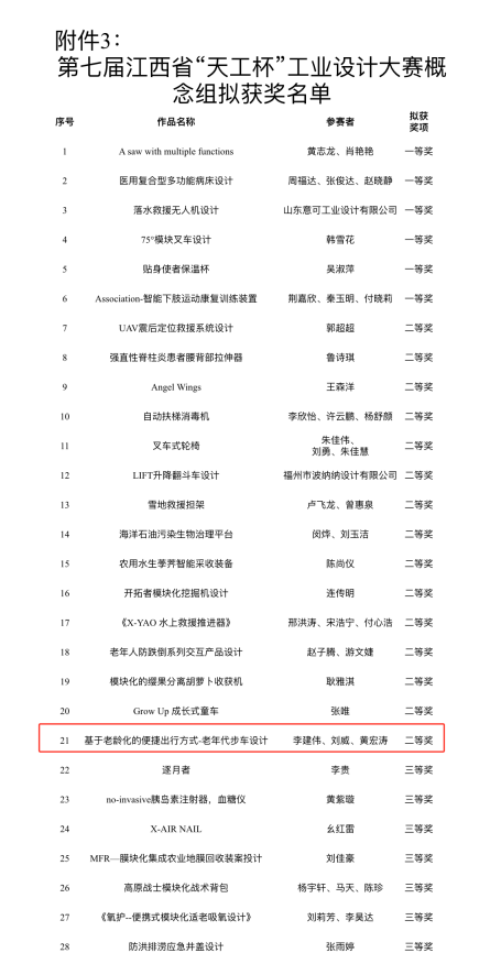 本网讯 1月11日,第七届江西省“天工杯”工业设计大赛圆满落幕,经大赛组委会选送推荐,木瓜视频 荣获“优秀组织奖”,建筑与设计学院黄金发教授荣获“优秀工作者奖”,建筑与设计学院产品设计专业学生荣获一项二等奖,一项优秀奖。