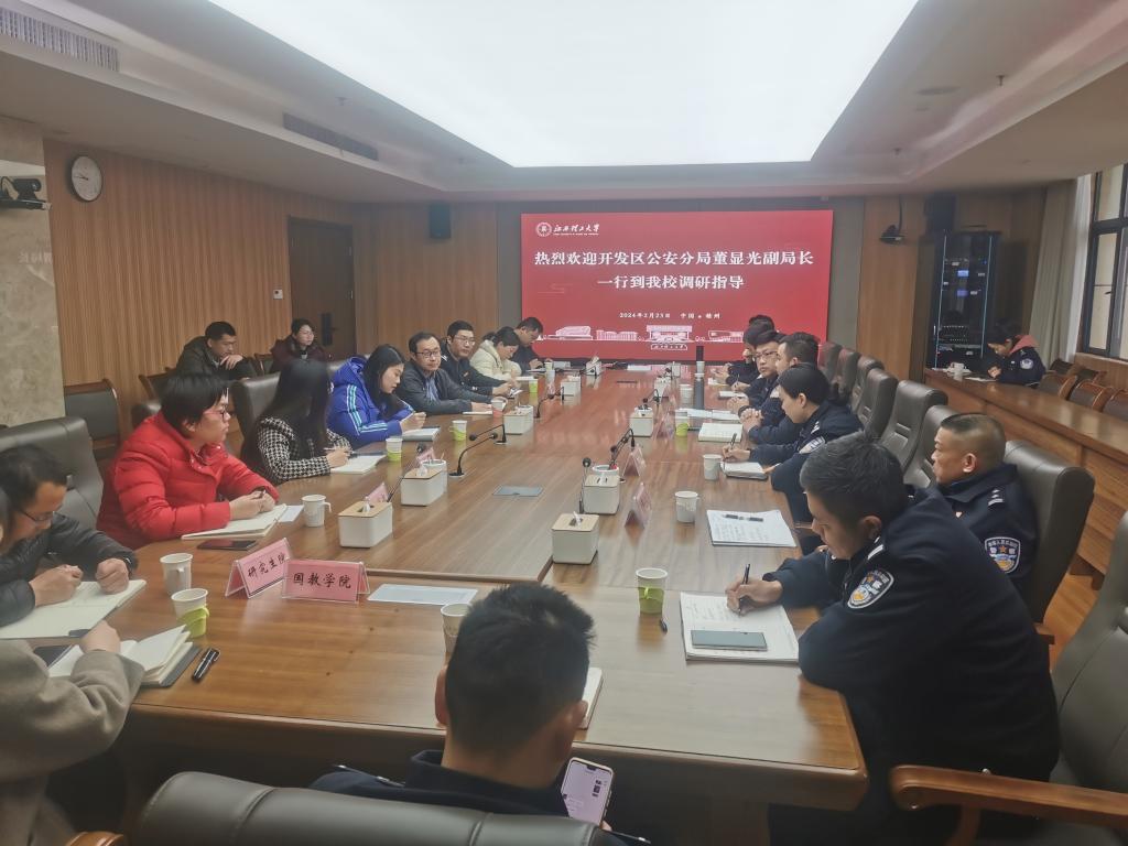 会上,学校党委武装部部长、保卫处处长闫光礼对开发区全体公安干警长期给予学校的支持表示感谢,同时希望在以后学校平安校园建设工作中得到更多的指导和帮助。他表示,在全体师生和各级公安部门的共同努力下,去年学校平安校园建设工作取得较好成绩,今后学校将继续加强与属地公安部门的联系,提高师生的安全意识,全面筑牢校园安全防线。