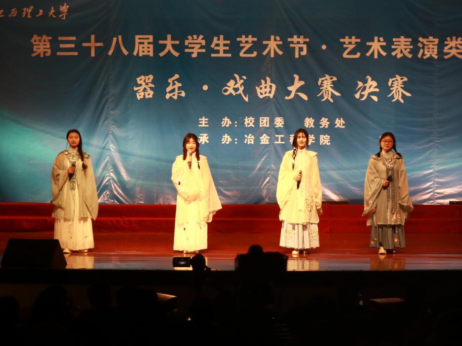 带来的《定军山》(选段)振奋了同学们的内心;外国语学院带来的《女驸马》唤起了同学们对传统之美的热爱;土木与测绘工程学院带来了风格不同的《声声慢》和《贵妃醉酒》,于温和唯美和婉转抒情中迸发了浓浓的戏曲魅力;经济管理学院带来的京剧《梨花颂》,娓娓道来了杨贵妃的优雅风姿;应急管理与安全工程学院的京剧《卖水》,给同学们留下了深刻印象;资源与环境工程学院带来的采茶戏《补皮鞋》(节选),表达了赣南采茶戏的轻松活泼,赣州戏曲历史的悠久。戏曲决赛在采茶戏的完美演绎下收官。