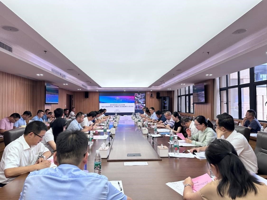 在三江校区濂溪楼2号会议室召开教学指导委员会会议暨2023-2024学年第二学期第三次本科教学工作会议。校党委常委、副校长黄志繁出席会议,全体教指委委员、督评处、各学院分管教学工作副院长、相关职能部门负责人及教务处全体人员参与会议。校教务处处长潘春荣主持会议。