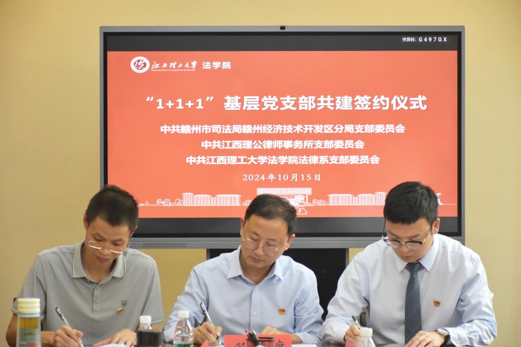 法律系党支部与赣州市司法局经开分局党支部、江西理公律师事务所党支部签订“1+1+1”基层党支部共建协议并开展联合主题党日活动。签约仪式在木瓜视频