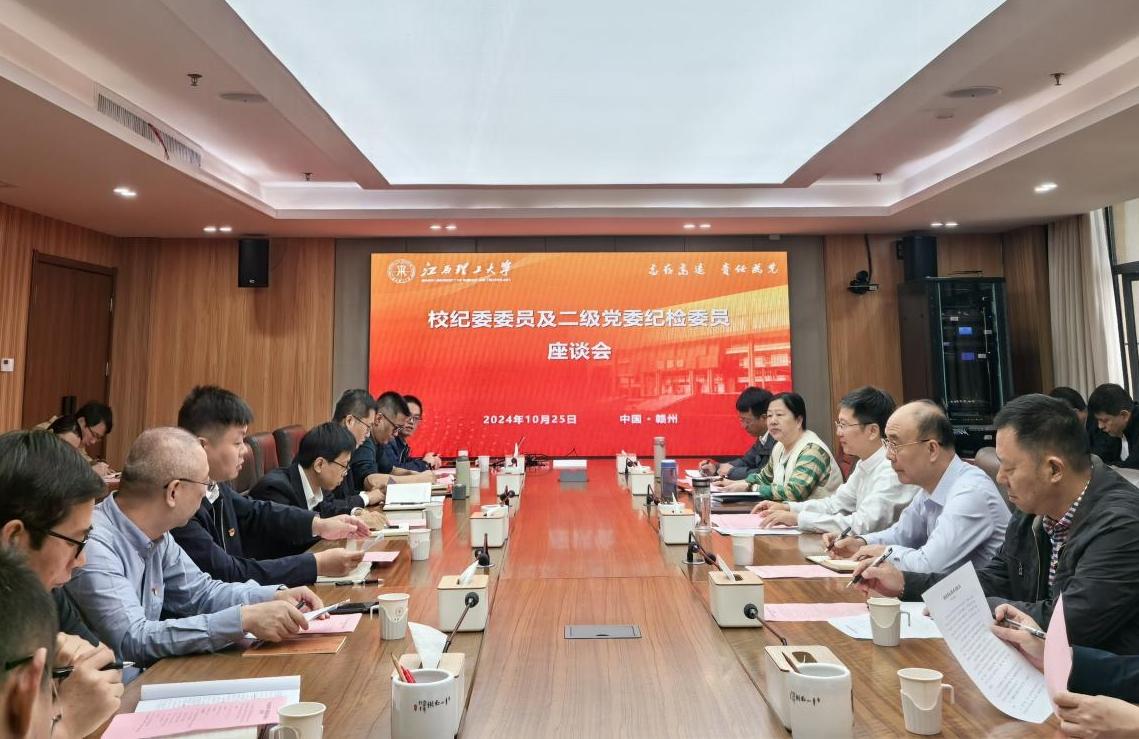 在濂溪楼三楼1号会议室召开校纪委委员及二级党委纪检委员座谈会。校党委常委、纪委书记、监察专员刘飞出席会议并讲话,校纪委委员、各二级党委纪检委员等28人参加会议。会议由校纪委副书记李旺主持。