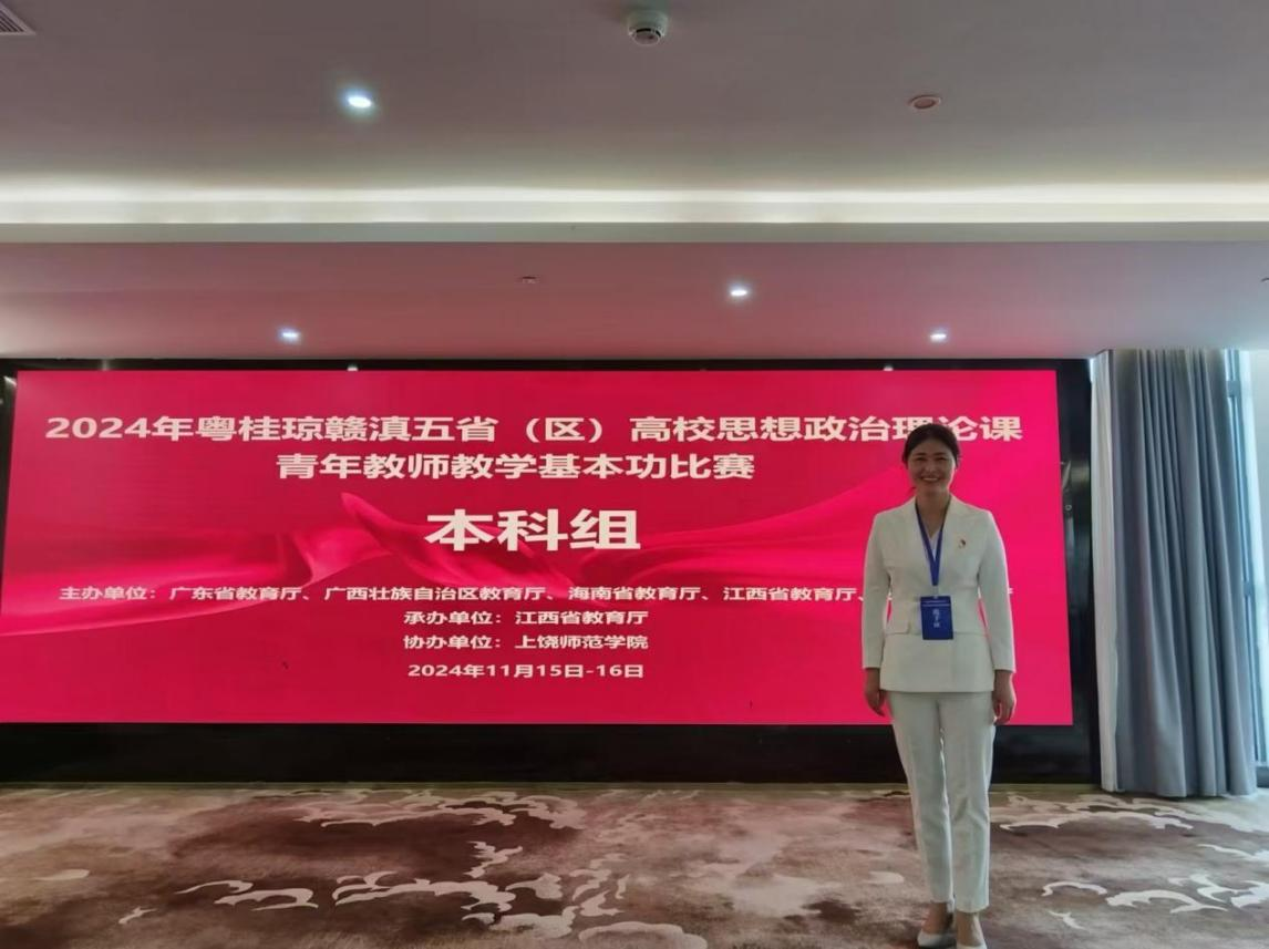 思政课教师陈楠楠作为江西省《毛泽东思想和中国特色社会主义理论体系概论》(本科组)教师代表参赛。专家评委对参赛选手的教学设计、教学态度、教学内容、教学方法、教学效果等指标进行综合评分。经过为期两天的激烈角逐,最终评选出本科组决赛一等奖5名、二等奖9名、三等奖11名,陈楠楠老师荣获二等奖。