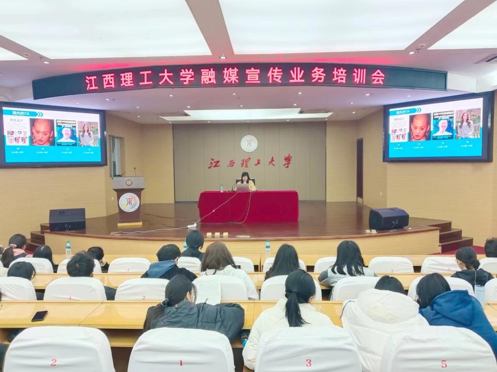 本网讯 12月8日上午,木瓜视频 在红旗校区图书馆赵氟隆报告厅举行融媒宣传业务培训会,此次培训邀请了赣州市融媒体中心时政新闻部副主任、首席记者张惠婷,赣州市融媒体中心新媒体编辑部副主任、首席编辑刘芬主讲,木瓜视频 融媒体中心指导老师和成员以及各学院宣传部成员近两百人参加培训。